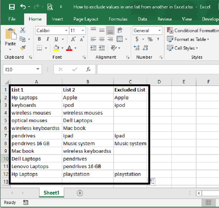 Excel 是一款功能強大的工具,它提供了各種用於資料處理和分析的功能。在這裡,我們將首先建立一個公式,用於在 Excel 中從一個列表中排除另一個列表中的值。讓我們看看如何實現這一過程。