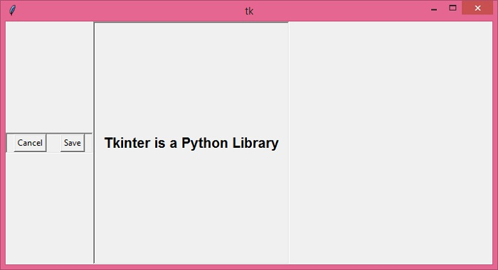 執行上述程式碼會顯示一個帶有兩個 frame 的視窗。每個 frame 中都有文字和按鈕小部件。可以使用幾何管理器明確調整 frame 小部件的大小。