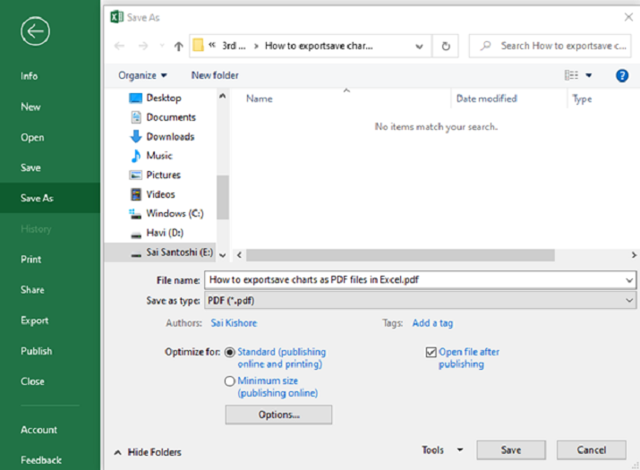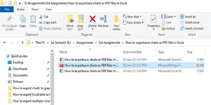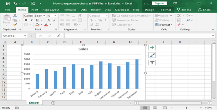 Excel 將所選圖表轉換為 PDF 檔案並將其儲存到指定位置。然後,您可以使用任何 PDF 檢視器開啟 PDF 檔案以檢視和共享圖表。
