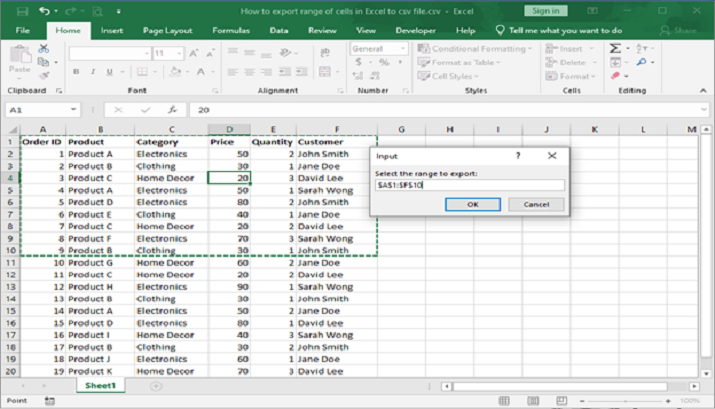藉助此 VBA 功能,使用者可以有效地將 Excel 工作簿中的特定資料區域匯出到 CSV 檔案,簡化資料管理並促進與其他應用程式的進一步分析或整合。