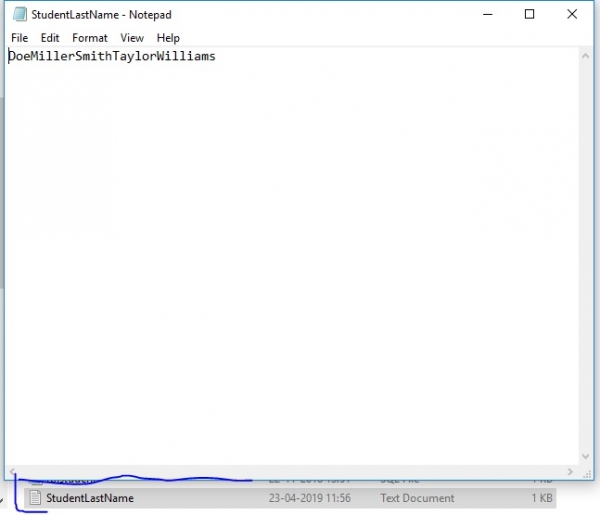 檔案位置為“E:\StudentLastName.txt”。檔案及其內容的螢幕截圖如下。我們已成功將列資料匯出到該檔案 −