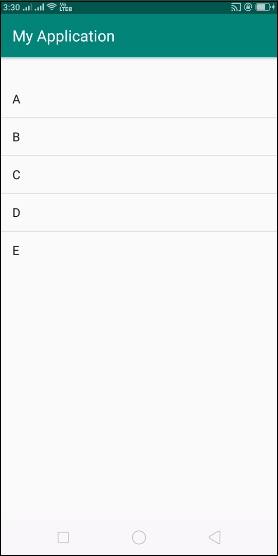 <?xml version="1.0" encoding="utf-8"?> <LinearLayout xmlns:android="http://schemas.android.com/apk/res/android" xmlns:tools="http://schemas.android.com/tools" android:layout_width="match_parent" android:layout_height="match_parent" android:orientation="vertical" android:gravity="center_horizontal" android:layout_marginTop="30dp" tools:context=".MainActivity"> <ListView android:id="@+id/list" android:layout_width="wrap_content" android:layout_height="wrap_content"> </ListView> </LinearLayout>