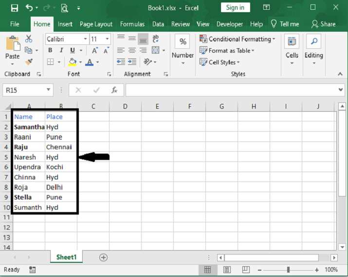 在這裡,我們將首先使用VBA應用程式建立一個公式,然後使用它來完成任務。讓我們看看一個簡單的過程,從Excel列表中僅提取粗體文字。