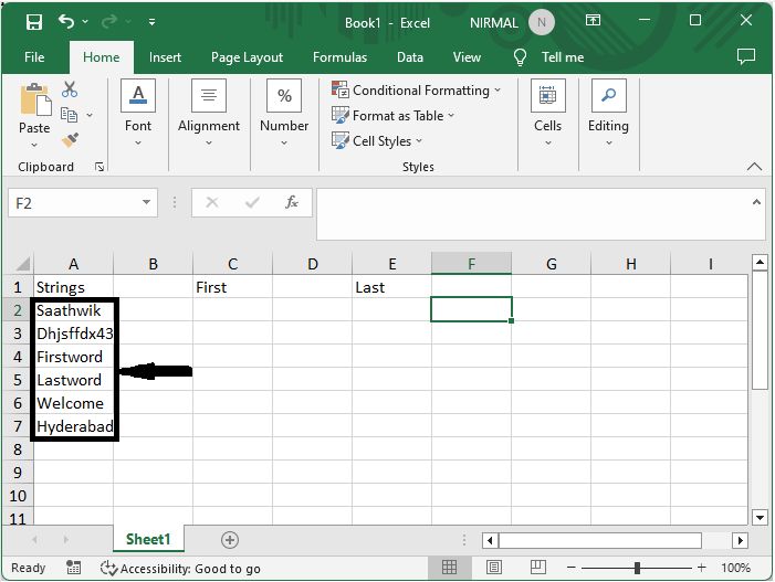 在這裡,我們將首先使用公式獲取第一個值,然後使用自動填充柄完成任務。因此,讓我們看看一個簡單的過程,瞭解如何在 Excel 中從字串中提取前 N 個和後 N 個字元。