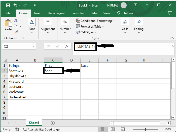 首先,要從字串中提取前 N 個字元,請單擊一個空單元格並輸入公式 =LEFT(A2,4),然後單擊回車以獲取第一個值。在公式中,A2 是單元格的地址,4 是 N 的值。