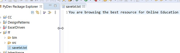 savetxt.txt 檔案會在專案中生成,其中捕獲自該頁面的文字。
