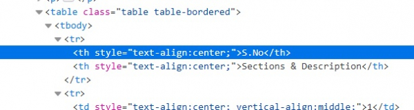 表格標題的 html 程式碼段如下所示 −