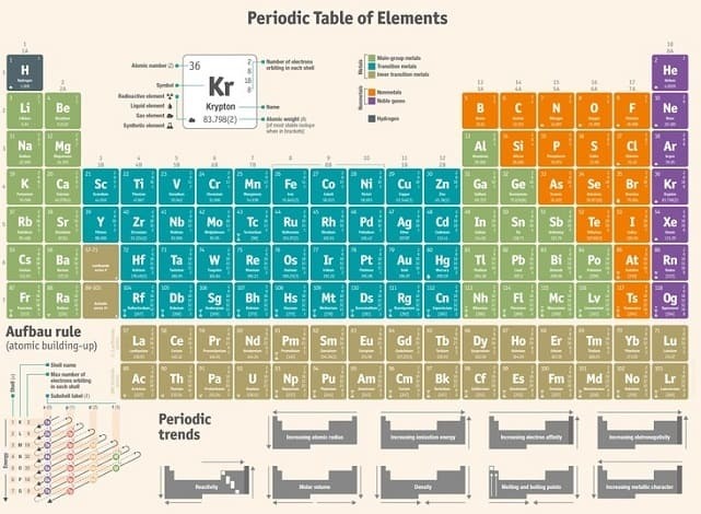 原子是元素最小的構成單元,或者是最簡單的可以進一步化學分解的物質。元素週期表是按照一定順序對原子和元素進行排列的圖表。原子由質子 (p)、中子 (n) 和電子 (𝑒−) 組成。原子質量 (A) 在確定元素的組成和相關性方面極其重要。