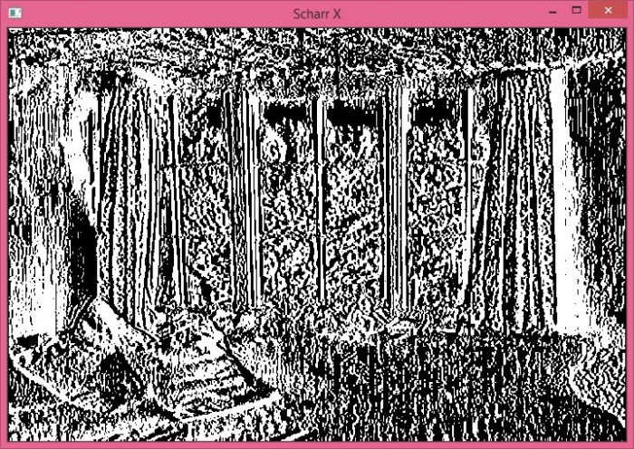 執行上述程式後,它將生成以下兩個輸出視窗:“Scharr X”和“Scharr Y”。