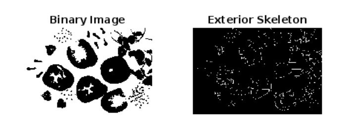 我們可以簡單地透過取二值影像的補集,然後找到補集二值影像的內部骨架來找到二值影像的外部骨架。