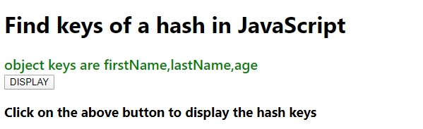 以下是 JavaScript 中查詢 hash 鍵的程式碼−