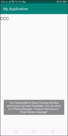 <?xml version="1.0" encoding="utf-8"?> <LinearLayout xmlns:android="http://schemas.android.com/apk/res/android" xmlns:app="http://schemas.android.com/apk/res-auto" xmlns:tools="http://schemas.android.com/tools" android:layout_width="match_parent" android:gravity="center" android:layout_height="match_parent" tools:context=".MainActivity"> <TextView android:id="@+id/text" android:textSize="30sp" android:layout_width="match_parent" android:layout_height="match_parent" /> </LinearLayout>