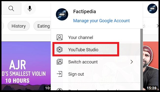 轉到左上角的個人資料圖示,然後選擇YouTube Studio。