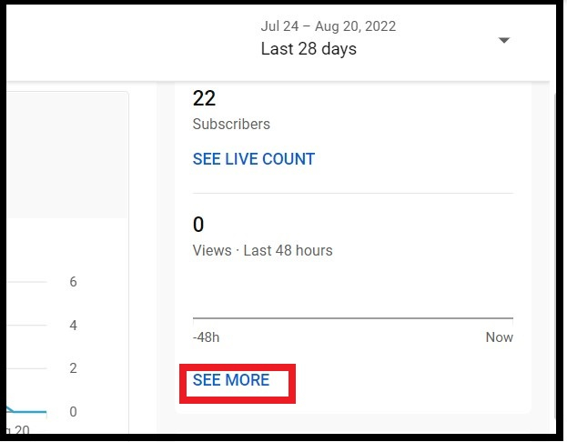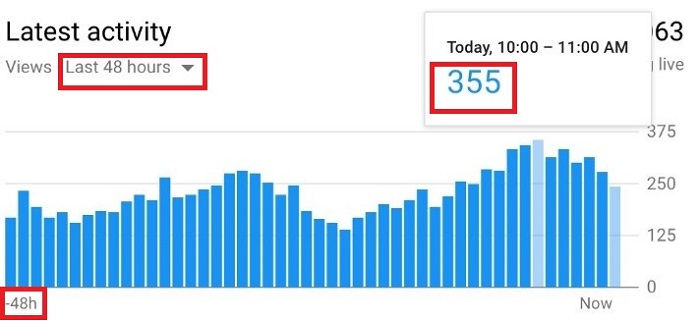 要檢視過去 48 小時的活動,請點選檢視更多。它將顯示頻道在過去 48 小時內每小時獲得的觀看次數。