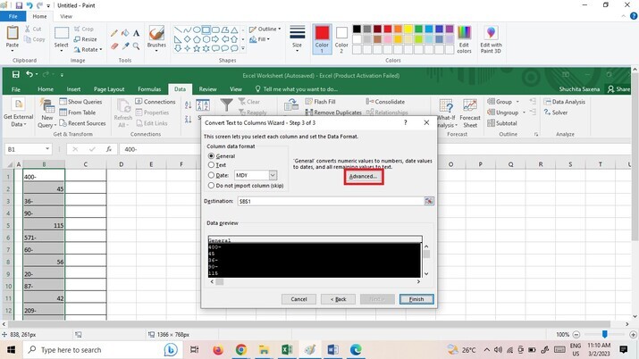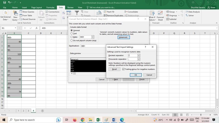 此外,還可以使用“文字到列”功能來更正尾隨負號。