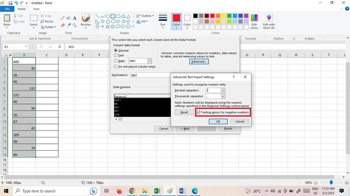 現在選中“尾隨減號表示負數”複選框選項,如下圖所示。