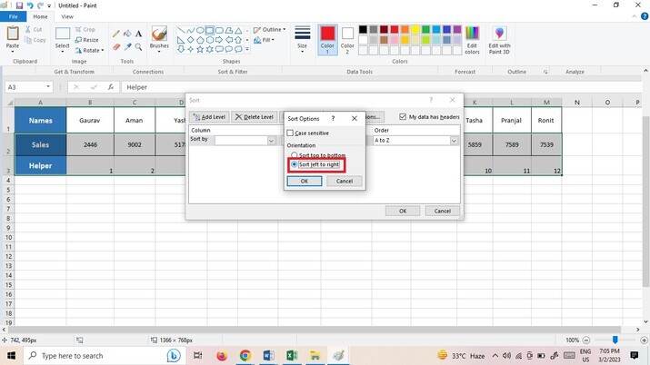 開啟“排序選項”後,選擇如下圖所示的“從左到右排序”單選按鈕