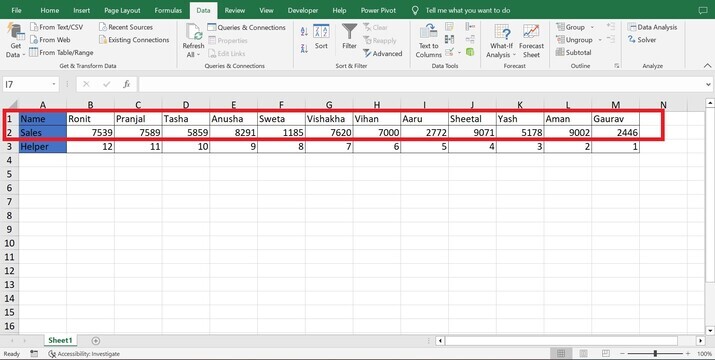 本文透過示例演示瞭如何使用排序命令在Excel中水平反轉一行資料順序。在Excel中,資料被翻轉,使左邊的值在右邊,右邊的值在左邊。