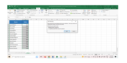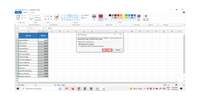 開啟排序警告對話方塊後,選擇突出顯示的“展開部分”選項按鈕,如下圖所示