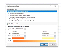 在條件格式化選單上單擊“新建規則”。然後將開啟“新建格式規則”視窗。