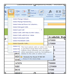 單擊 Kutools 選項卡的“選擇”選項後,它將顯示各種選項的選單。然後單擊“選擇特定單元格”選項,如下圖所示。