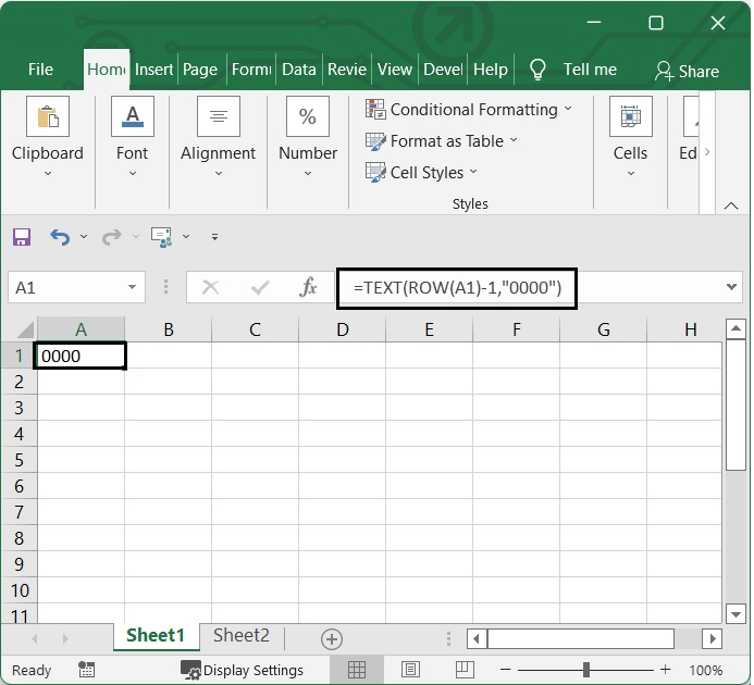 在Excel表格中,選擇一個單元格並在其中新增以下公式。在本例中,我們選擇了A1並在其中添加了公式。