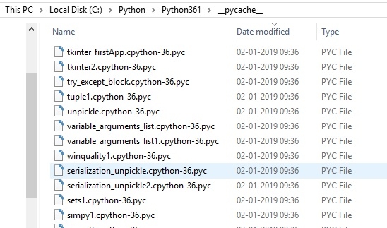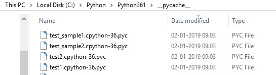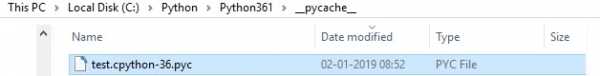 True現在我們看到.pyc檔案已建立在“folder_name\__pycache__”位置。