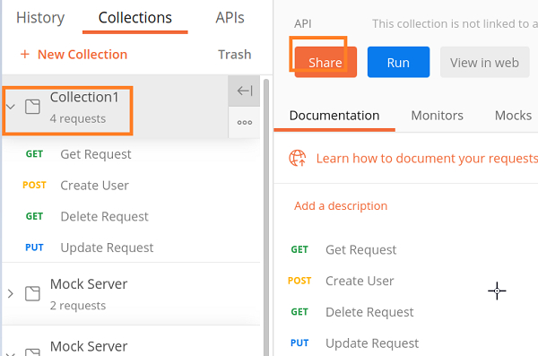 步驟 1 − 單擊側欄中集合名稱旁邊的箭頭。然後,單擊“共享”按鈕。