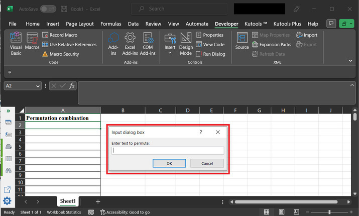 這將開啟“輸入對話方塊”,其中包含一個輸入標籤。使用者可以輸入想要建立排列組合的資料。
