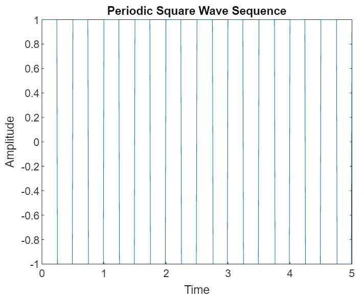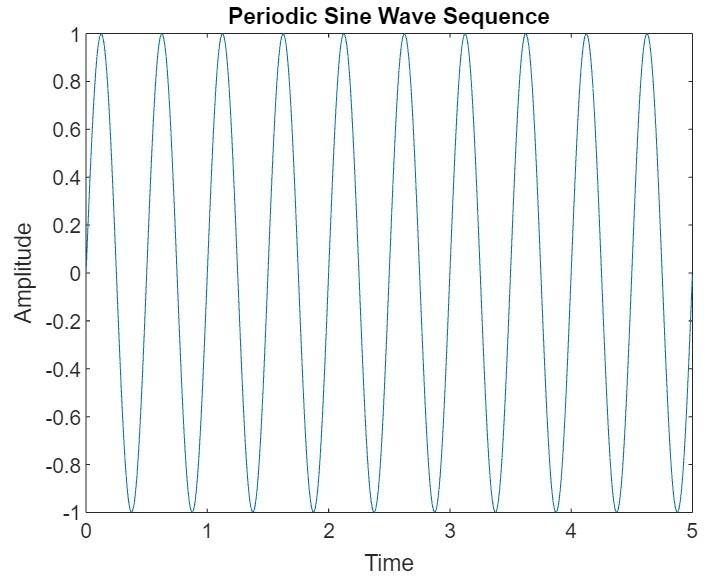 如上所述,週期性序列在時間間隔內具有確定且規律地重複的模式。在 MATLAB 中,我們可以生成不同型別的週期性序列,例如“sin”、“cosine”、“square”等。