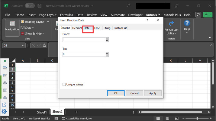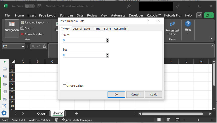 上述步驟將開啟“**插入隨機資料**”對話方塊。此對話方塊允許使用者輸入兩個輸入。這些輸入基本上是範圍。