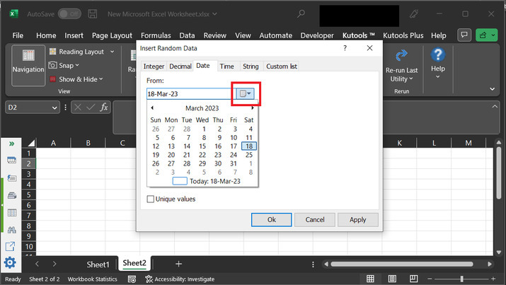 選擇開始日期和結束日期以生成隨機資料。單擊下圖所示的下拉箭頭。