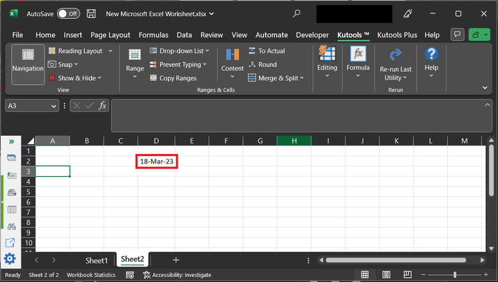 要了解此方法,請考慮一個空白工作表,並選擇任何空單元格來列印生成的隨機日期。