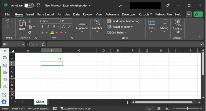 為了理解生成隨機數的過程,讓我們考慮一個空的 Excel 表格,其中 B2 單元格處於活動狀態。