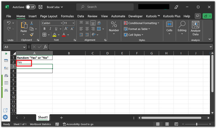 本文介紹了生成隨機“是”或“否”的方法。文章中闡述了兩個不同的示例。第一個示例側重於使用預定義的Excel公式,而第二個示例允許使用者透過簡單地使用Kutools來生成相同的所需輸出。
