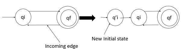 如果初始狀態存在任何入邊,則需要建立一個沒有入邊的新的初始狀態。