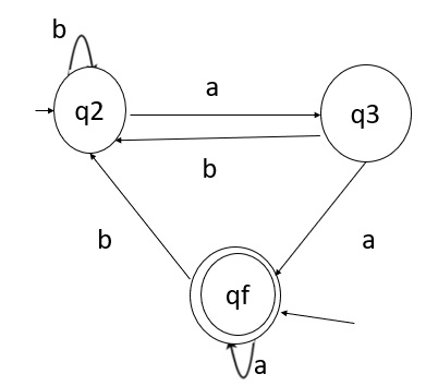 q2 = q1b(b + ab)* (應用 Arden 定理)