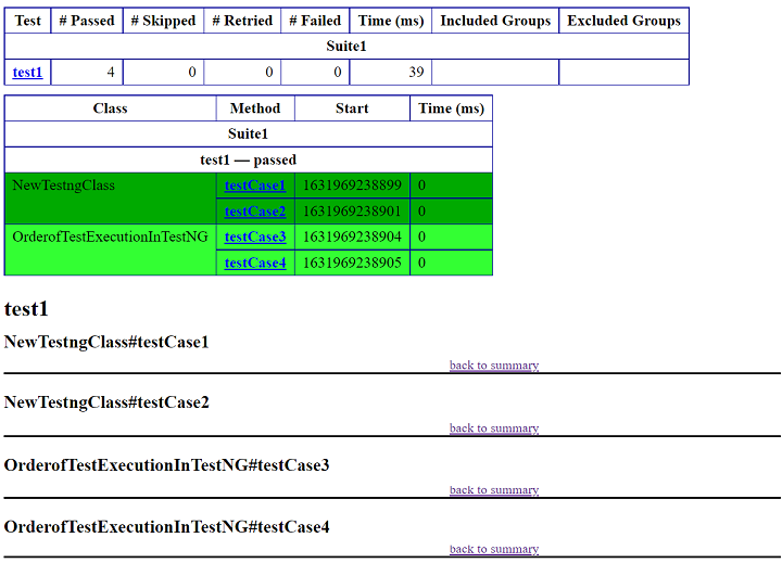 除此之外,TestNG 還會生成 emailable-report.html 檔案。它包含彙總報告,可以傳送到電子郵件中。
