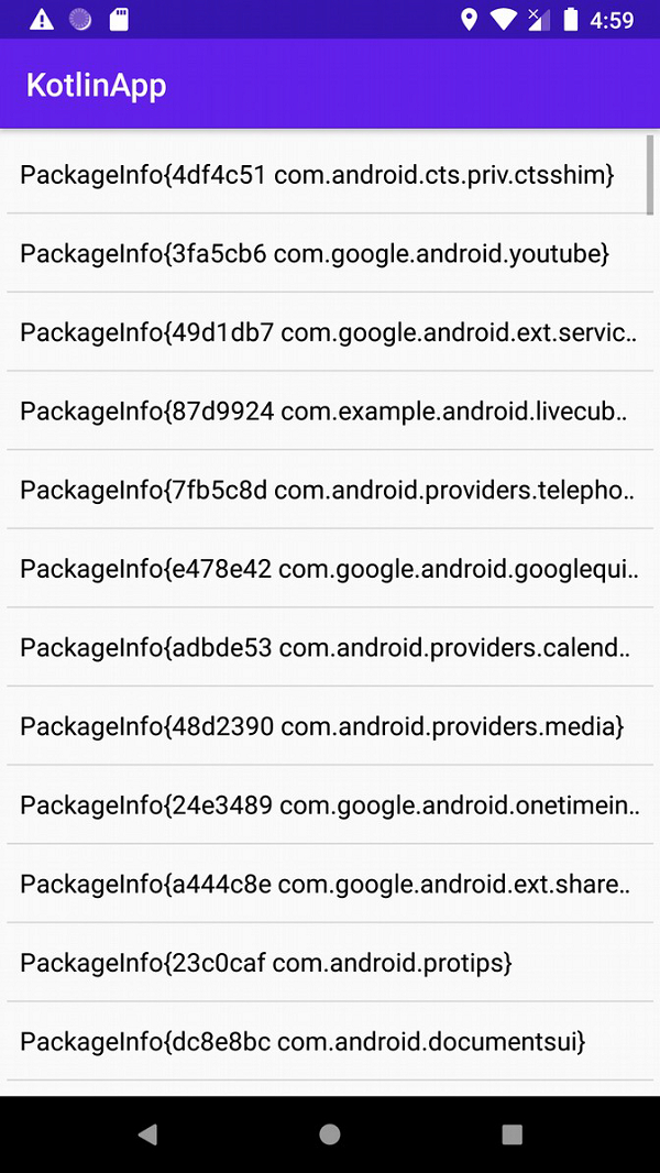 此示例演示如何在Kotlin中獲取已安裝Android應用程式的列表。