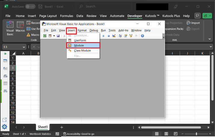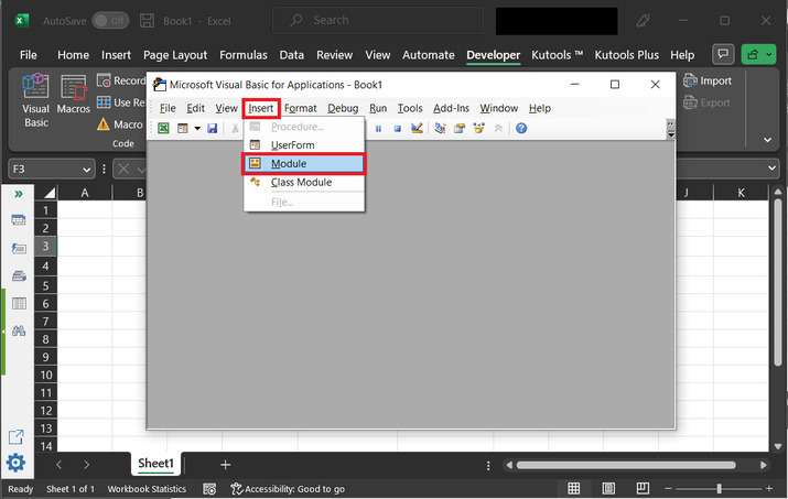 然後選擇“插入”選項卡,然後選擇“模組”。