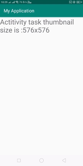 textView.setText("Actitivity task thumbnail size is :" + activityManager.getAppTaskThumbnailSize());