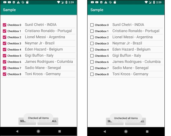 Toast.makeText(getApplicationContext(), "Checked all items",