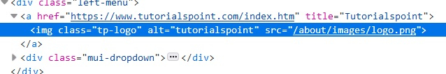 讓我們看看一個元素的 html 程式碼並獲得其 src 屬性的值。其 src 屬性的值應為 /about/images/logo.png。