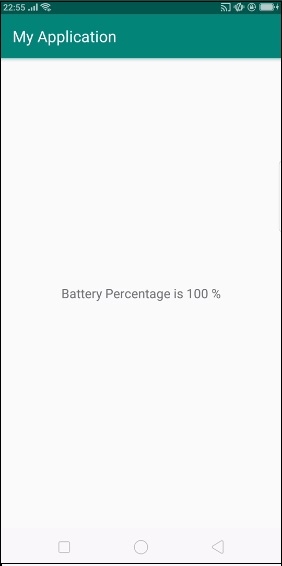 }在上面的程式碼中,我們使用了電池管理器系統服務。要獲取電池百分比,請使用以下程式碼: