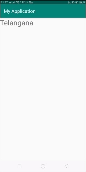 <?xml version="1.0" encoding="utf-8"?> <LinearLayout xmlns:android="http://schemas.android.com/apk/res/android" xmlns:app="http://schemas.android.com/apk/res-auto" xmlns:tools="http://schemas.android.com/tools" android:layout_width="match_parent" android:gravity="center" android:layout_height="match_parent" tools:context=".MainActivity"> <TextView android:id="@+id/text" android:textSize="30sp" android:layout_width="match_parent" android:layout_height="match_parent" /> </LinearLayout>