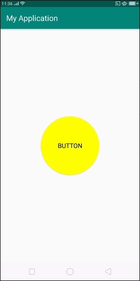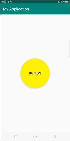 <?xml version = "1.0" encoding = "utf-8"?> <LinearLayout xmlns:android = "http://schemas.android.com/apk/res/android" android:id = "@+id/parent" xmlns:tools = "http://schemas.android.com/tools" android:layout_width = "match_parent" android:layout_height = "match_parent" tools:context = ".MainActivity" android:gravity = "center" android:orientation = "vertical"> <Button android:id = "@+id/text" android:textSize = "18sp" android:textAlignment = "center" android:background = "@drawable/round_button" android:layout_width = "150dp" android:textColor = "#000" android:layout_height = "150dp" /> </LinearLayout>