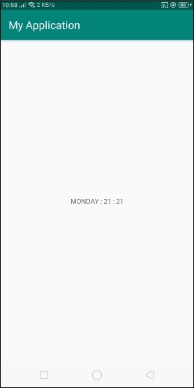 <?xml version="1.0" encoding="utf-8"?> <android.support.constraint.ConstraintLayout xmlns:android="http://schemas.android.com/apk/res/android" xmlns:app="http://schemas.android.com/apk/res-auto" xmlns:tools="http://schemas.android.com/tools" android:layout_width="match_parent" android:layout_height="match_parent" tools:context=".MainActivity"> <TextView android:id="@+id/date" android:layout_width="wrap_content" android:layout_height="wrap_content" android:text="Local Date" app:layout_constraintBottom_toBottomOf="parent" app:layout_constraintLeft_toLeftOf="parent" app:layout_constraintRight_toRightOf="parent" app:layout_constraintTop_toTopOf="parent" /> </android.support.constraint.ConstraintLayout>