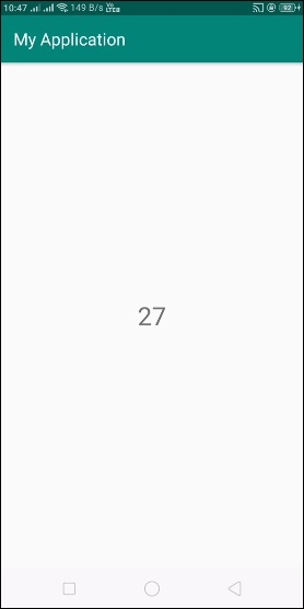 <?xml version="1.0" encoding="utf-8"?> <LinearLayout xmlns:android="http://schemas.android.com/apk/res/android" xmlns:app="http://schemas.android.com/apk/res-auto" xmlns:tools="http://schemas.android.com/tools" android:layout_width="match_parent" android:gravity="center" android:layout_height="match_parent" tools:context=".MainActivity" android:orientation="vertical"> <TextView android:id="@+id/text" android:textSize="30sp" android:layout_width="wrap_content" android:layout_height="wrap_content" /> </LinearLayout>