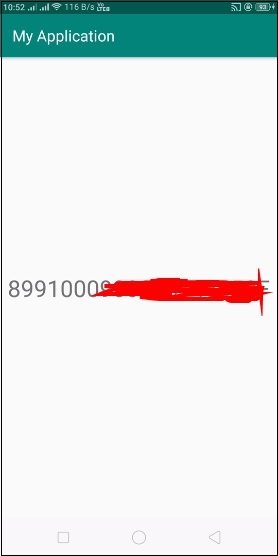 <?xml version="1.0" encoding="utf-8"?> <manifest xmlns:android="http://schemas.android.com/apk/res/android" package="com.example.myapplication"> <uses-permission android:name="android.permission.READ_PHONE_NUMBERS" /> <uses-permission android:name="android.permission.READ_PHONE_STATE" /> <application android:allowBackup="true" android:icon="@mipmap/ic_launcher" android:label="@string/app_name" android:roundIcon="@mipmap/ic_launcher_round" android:supportsRtl="true" android:theme="@style/AppTheme"> <activity android:name=".MainActivity"> <intent-filter> <action android:name="android.intent.action.MAIN" /> <category android:name="android.intent.category.LAUNCHER" /> </intent-filter> </activity> </application> </manifest>