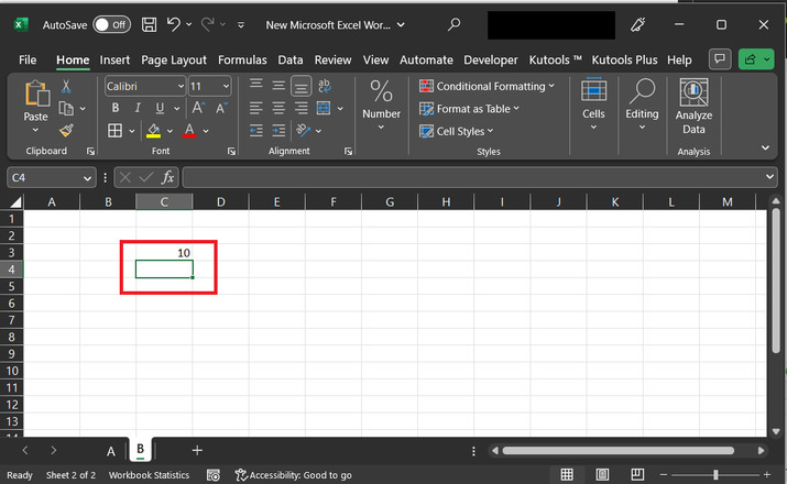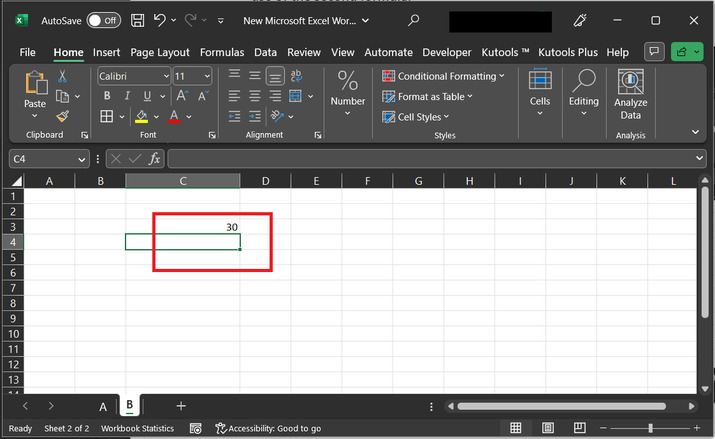 在此示例中,我們將把工作表A中C2單元格的值複製到工作表B。